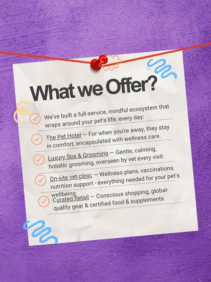 All-in-One Pet Care - Retail store, vet clinic, luxury spa, pet-first cafe, and a crate-free pet hotel for your furry buddy.
