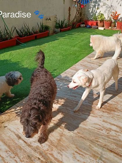 My home in Delhi/NCR is a safe haven for dogs, featuring a secure outdoor area with artificial grass for zoomies and a comfy indoor space for relaxing. It's a true dog-friendly venue where your baby can roam freely and just be a happy dog.