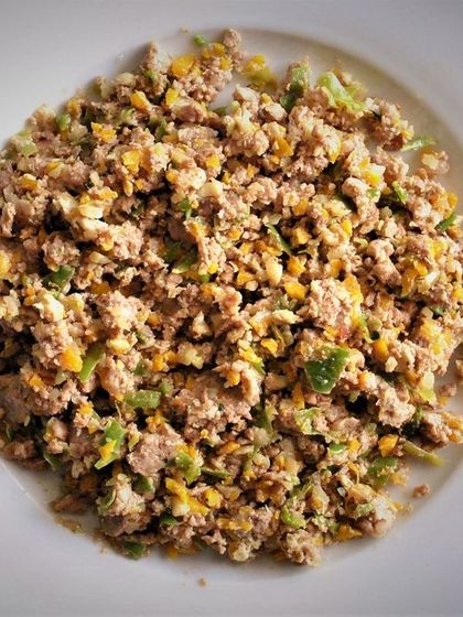 - Healthy extras like eggs, coconut oil, flax seeds, and even minced bones for calcium.