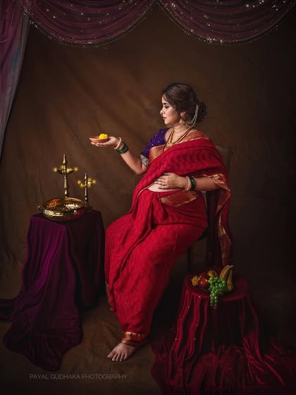 - Love the classic look? My Raja Ravi Varma style photography is all about rich colours, sarees, old brass props, and dramatic light. Perfect for those regal maternity moments or anyone who wants that royal touch.