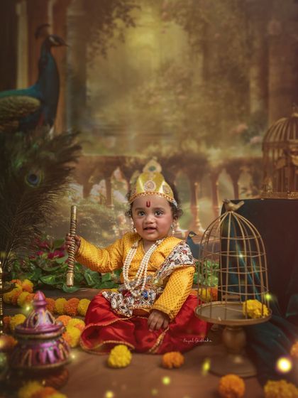 - For little ones, I do Little Krishna baby shoots with all the works - peacock feathers, flutes, butter pots, and a divine setup that’s pure desi heart.
