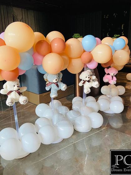 We design heartfelt decorations for baby showers, kuan pujan, and baby arrival ceremonies. Our setups feature custom backdrops, elegant balloon arrangements, and beautiful floral details, with popular themes like "We Can Bearly Wait" teddy bears or cute elephants.