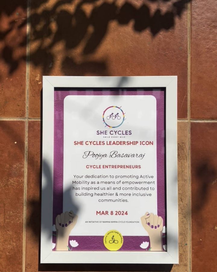 We are passionate cyclists dedicated to making riding accessible and fun. My co-founder, Poojya, was recognized as a She Cycles Leadership Icon for her work in promoting cycling as a means of empowerment.