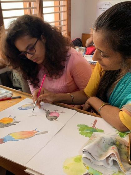 Courses & Workshops - We teach pencil sketching, watercolor painting, acrylics, and Indian folk arts like Chittaara and Kalamkari.