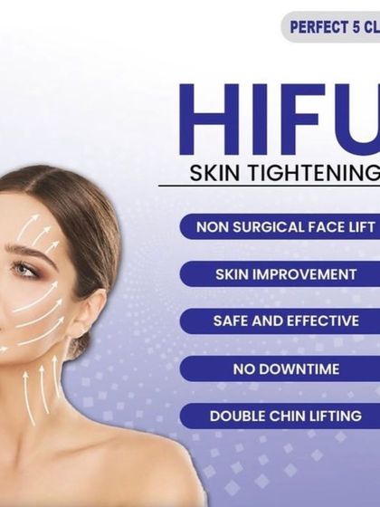 We use High-Intensity Focused Ultrasound (HIFU) technology to provide a non-surgical facelift. This treatment targets deep layers of the skin to stimulate collagen, resulting in significant tightening, fat reduction, and a more defined jawline with no downtime.
