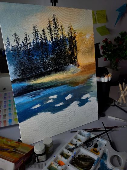 I use high-quality acrylic paints and materials to ensure lasting artwork. My paintings range from small-scale quick pieces to detailed compositions requiring meticulous attention.