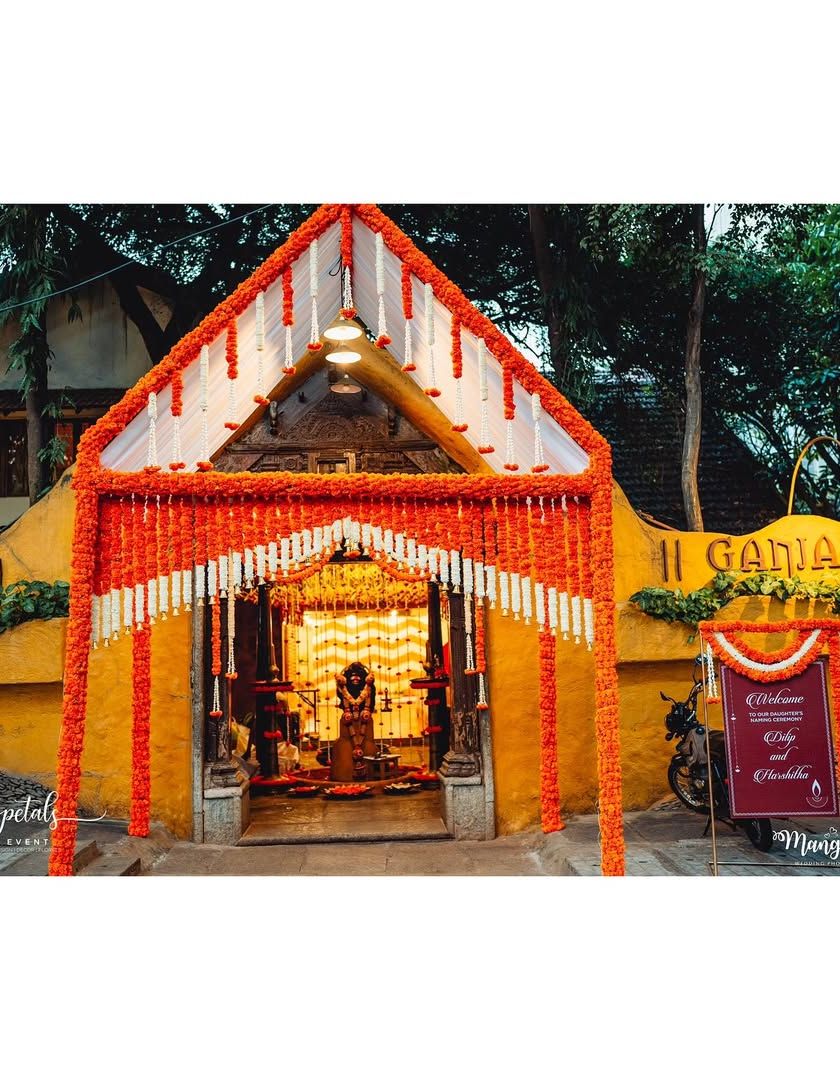 I take great care in decorating for life's most precious milestones, like naming ceremonies. This gallery showcases my focus on creating beautiful and culturally rich settings for these intimate family functions, often featuring decorated cradles (jhulas), marigold decor, and other traditional elements.
