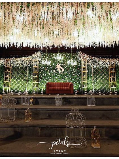 - Custom floral wedding installations, dreamy green fern walls, and twinkling lights for Jayamala.