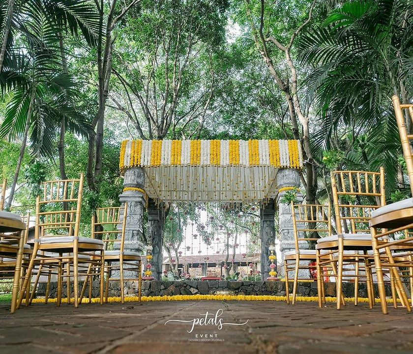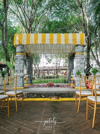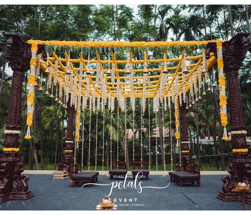 I specialize in creating authentic South Indian mandaps that feel like stepping into a timeless temple. I use elements like traditional wooden pillars, hand-woven coconut leaf details, and an abundance of fresh flowers such as marigolds, tuberoses, and lotuses to honor our rich heritage.
