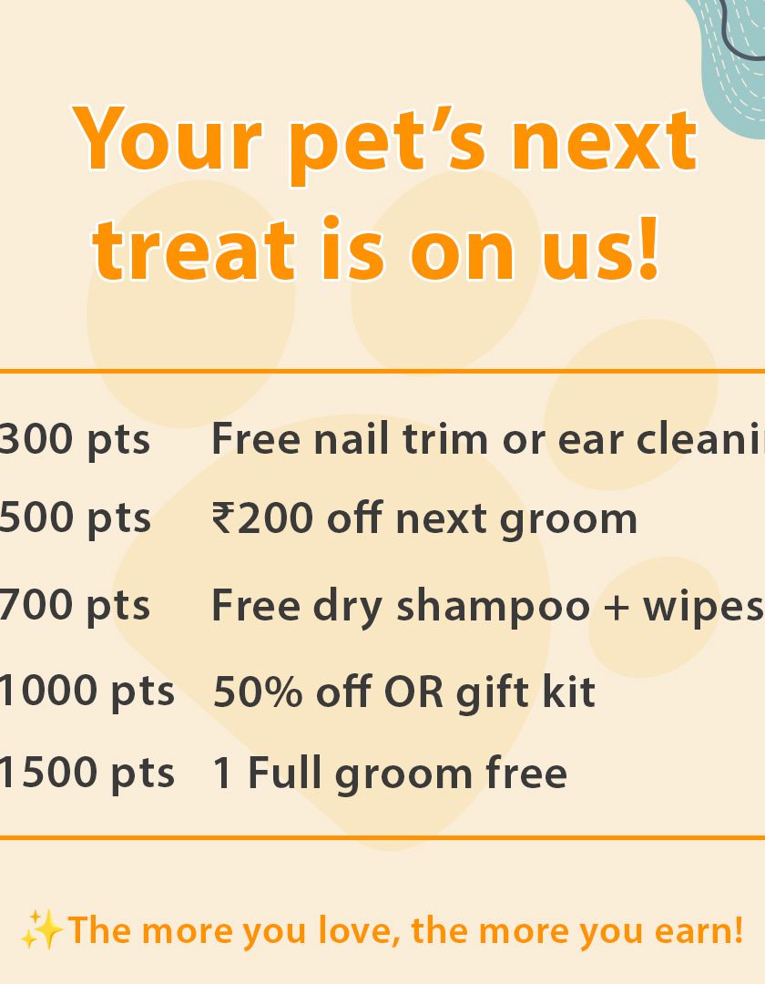 I love to give back to my wonderful clients and their pets. In this section, you'll find information on my latest seasonal promotions, giveaways, and my Paw Points Club loyalty program, where you earn rewards with every groom.