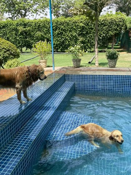 Weekend Pool & Playtime - Pool hai, bada maidan hai—dogs swim karte hain, energy release karte hain. Playtime is must.