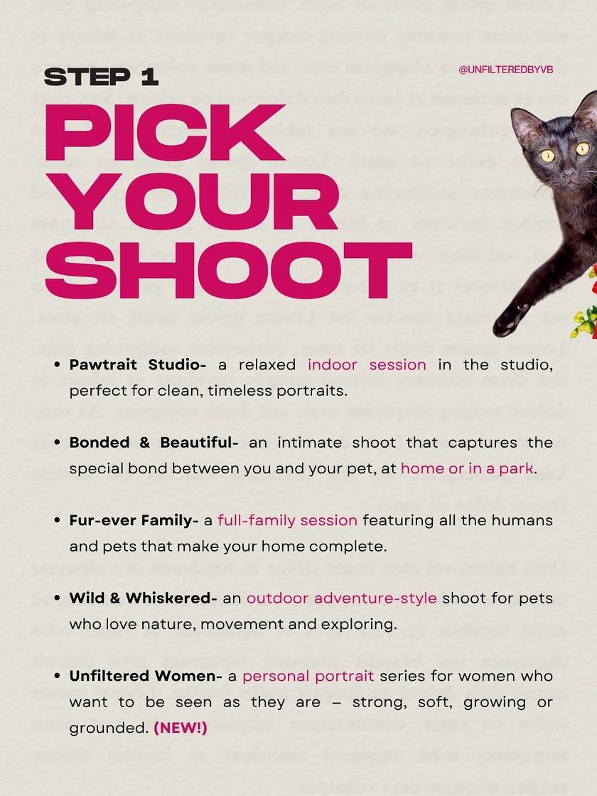 Ready to create timeless memories of your furry family? Here’s a simple guide to booking your own Unfiltered by VB photoshoot. Just a few easy steps and we’ll be on our way to capturing your pet’s unique story.