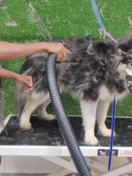 - Then comes a high velocity dryer grooming session. The amount of fur flying out - jaasthi fur (loads of fur) - is wild, especially for those double-coated breeds.
