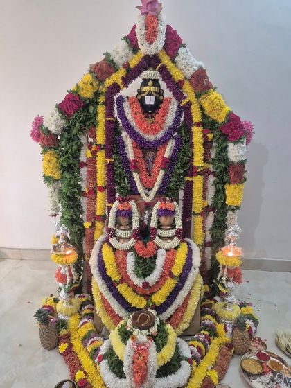 Beyond the common poojas, I also conduct other important ceremonies like Shani Shanthi for pacifying the planet Saturn, and Raghavendra Swamy Aradhana. This gallery also shows the detailed alankaram (decoration) of deities, which is a key part of my seva.
