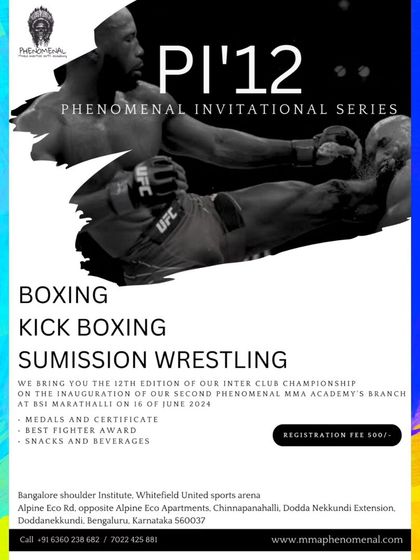 - The Phenomenal Invitational Series: our inter-club martial arts tournament, bringing together fighters from different gyms for fair, competitive matchups in boxing, kickboxing, and submission wrestling.
