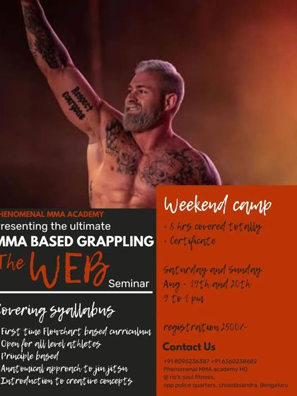 - “The WEB” MMA grappling seminar: a weekend camp with a flowchart-based curriculum, focusing on biomechanics and the ‘why’ behind every move.