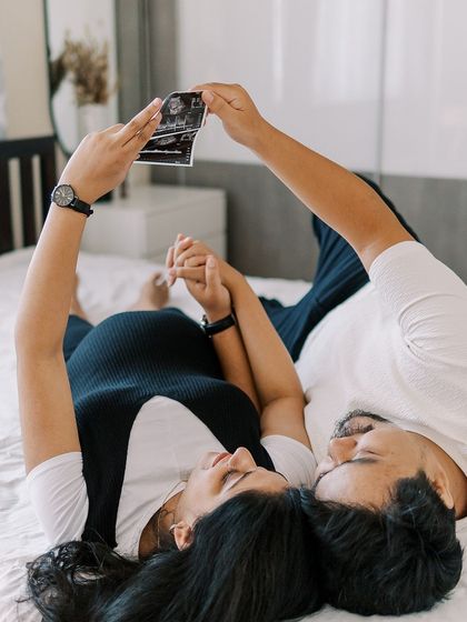 Styling is easy - wear what feels good, maybe a flowy dress or jeans. I don’t use many props, sometimes just your ultrasound photo if you want. That’s enough to tell your story.