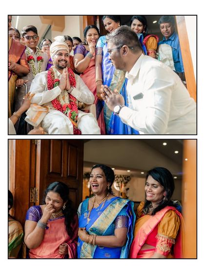 We handle all your wedding photography and videography ourselves, covering every event with candid shots and films, and we know both South and North Indian traditions so you don’t have to explain rituals.