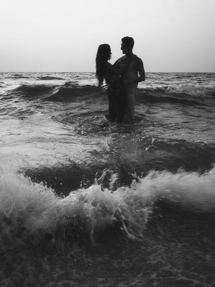 I specialize in seascape and sunset engagement photos, primarily along the coast of Kochi. These sessions use the natural drama of the waves, golden light, and silhouettes to create moody and cinematic images that are full of movement and emotion.