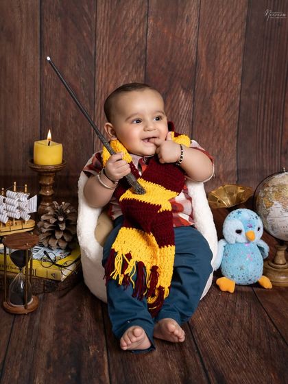 Let's celebrate your child's milestones with a fun and imaginative photoshoot. Whether it's for a first birthday, a sitter session, or just for fun, we can create a custom theme based on their favorite things. From Harry Potter to a festive Christmas setup, I provide the props and costumes to bring their magical world to life.