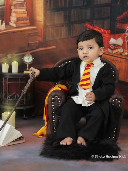 We bring your child's storybook dreams to life with over 40 creative and luxury themes. From Harry Potter's magic and nautical adventures to our special Janmashtami sets and 'little professor' concepts, we provide all props and outfits for a unique photoshoot.