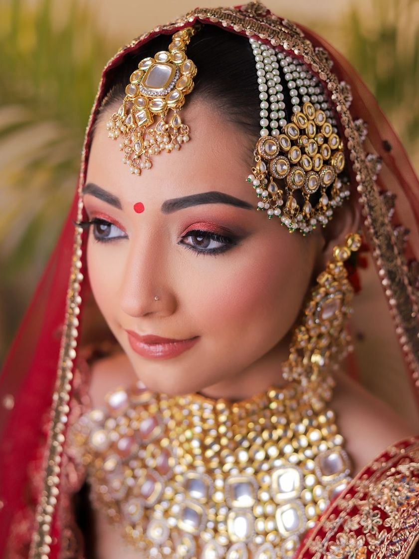 We specialize in creating timeless portraits for traditional and contemporary bridal makeup. Our packages include full styling with a wide selection of bridal lehengas and exquisite jewellery sets to complement your artistry for main wedding day, sangeet, or reception looks.