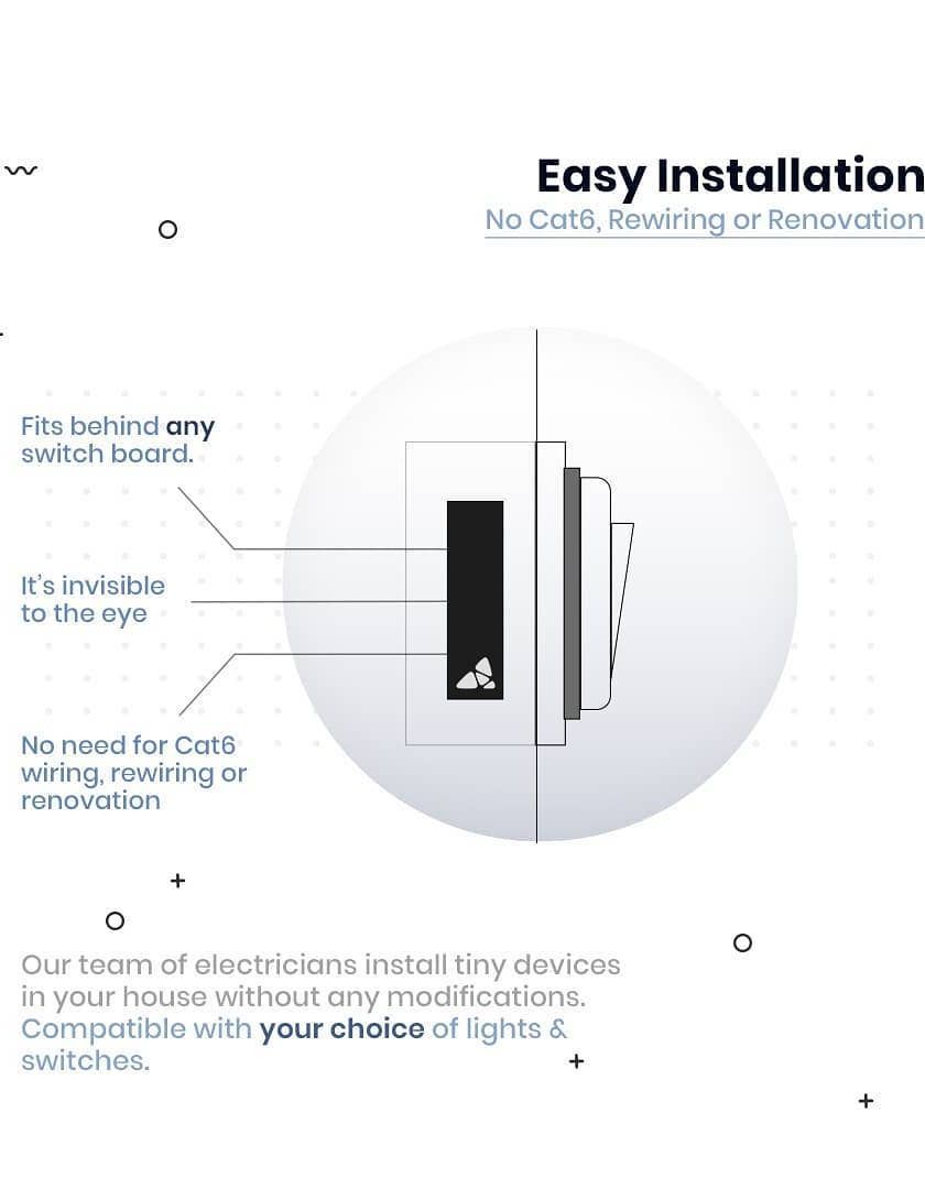 I designed this system to be simple. My tiny 'Made in India' device fits right behind your existing switchboards. No breaking walls, no rewiring, no mess. Your home gets smart without the renovation headache, which is perfect for renters or anyone who just hates drama.