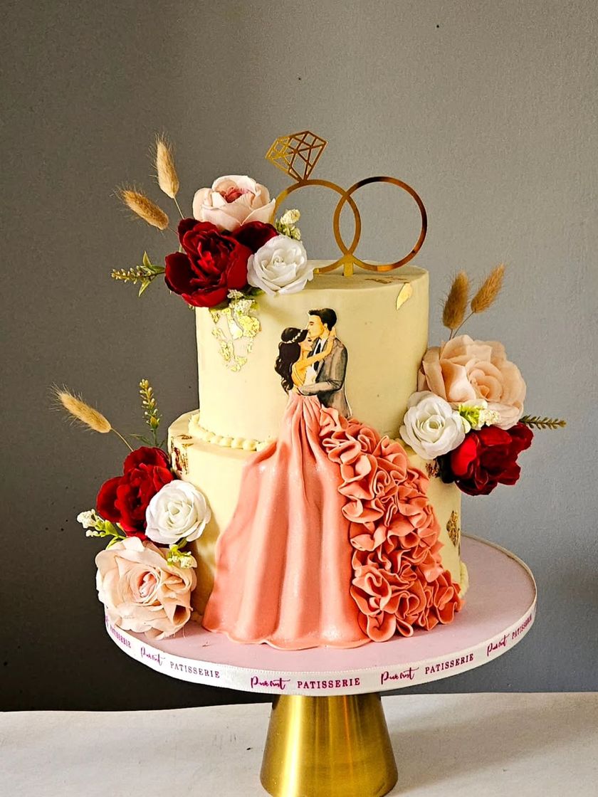 Mark your special romantic milestones with a sophisticated and elegant cake. This collection features designs for engagements, weddings, and anniversaries, incorporating elements like handcrafted floral arrangements, personalized couple toppers, and luxurious finishes.