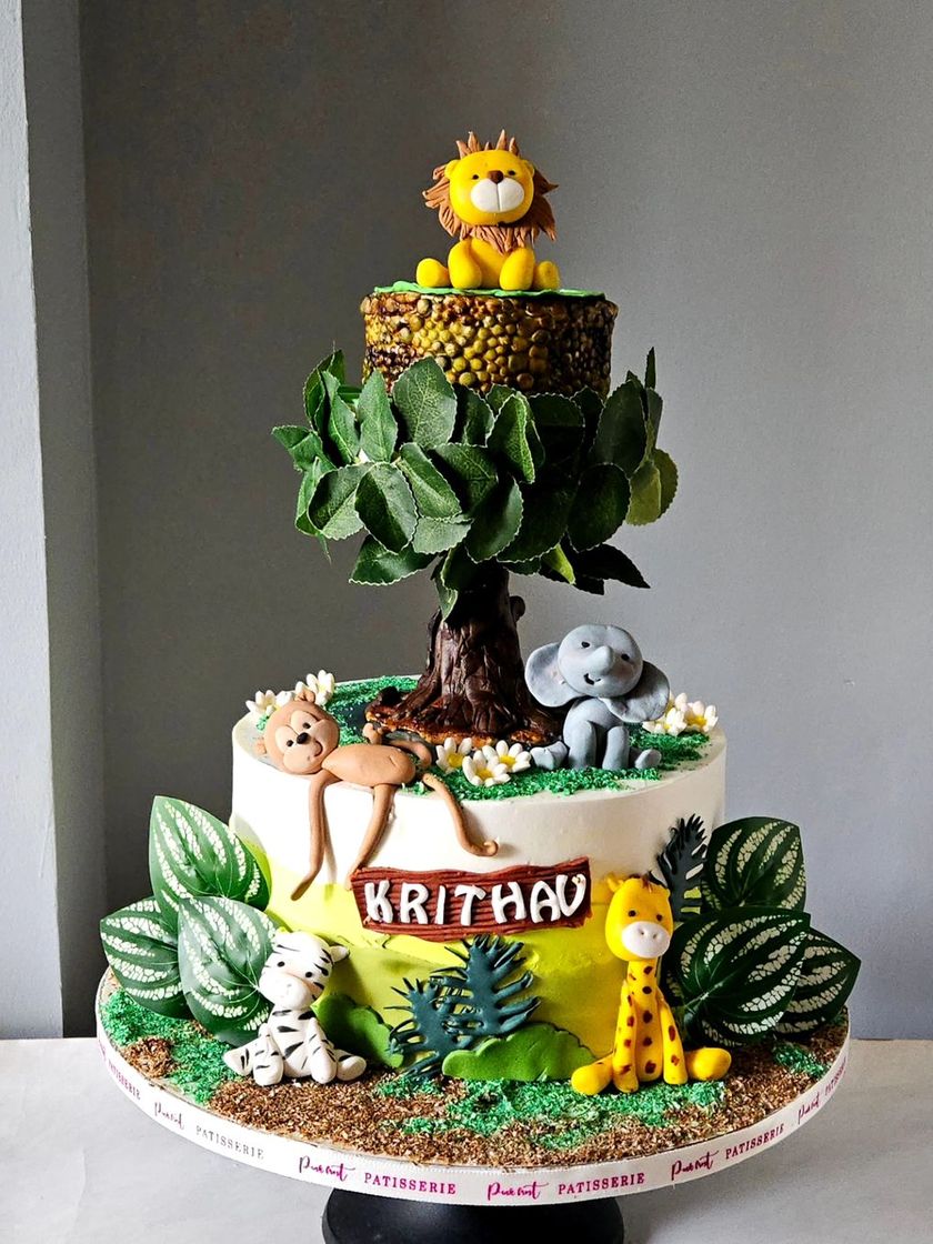 Explore my collection of jungle, woodland, and animal-themed cakes, perfect for the little adventurer. I handcraft a variety of cute animal figurines, from lions and monkeys to foxes and deer, creating a vibrant safari or an enchanted forest scene.
