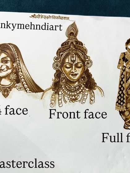 Portraits & Figures - Radha-Krishna, pets, ya family - we bring them alive with detailed portrait mehndi design.