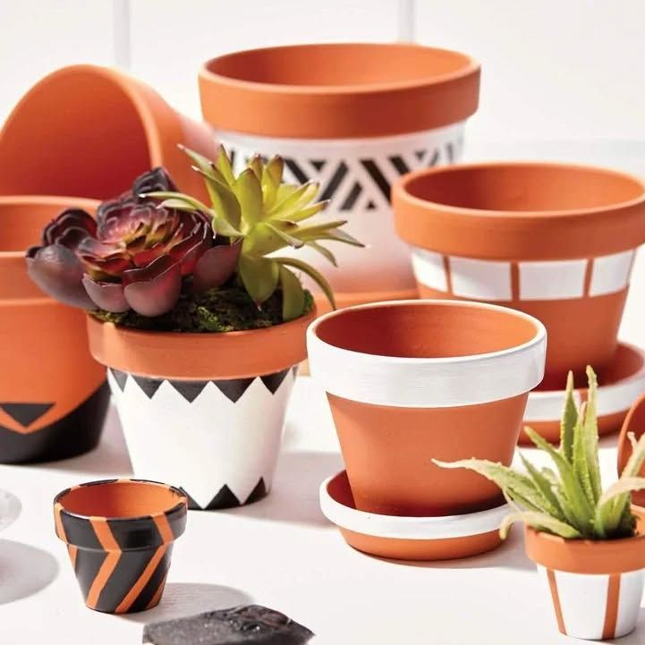 The right pot can transform a plant into a piece of art. I offer a selection of planters to complement your greenery, including hand-painted earthen pots and stylish metal planters on wooden stands.