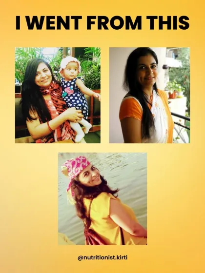 Hi, I’m Kirti. Main computer engineer thi, par life ne kuch alag hi plan bana diya. 2014 mein, after my daughter was born, I was overweight, tired, and honestly, lost. Sab bolte the weight loss possible nahi after baby, par mujhe prove karna tha. Plant-based khana, local food, thoda patience - lost 28 kgs. Ab nutrition meri journey ka hissa hai, aur main wahi share karti hoon jo khud pe try kiya hai. No random gyaan, just real talk.