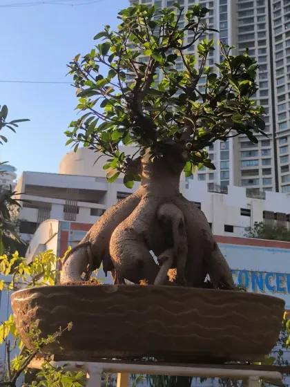 We have a passion for the art of bonsai, from starter material to mature, styled trees. Our collection includes classic Ficus and Jade bonsai, flowering varieties like Adenium, and unique specimens like Raintree and Pine.