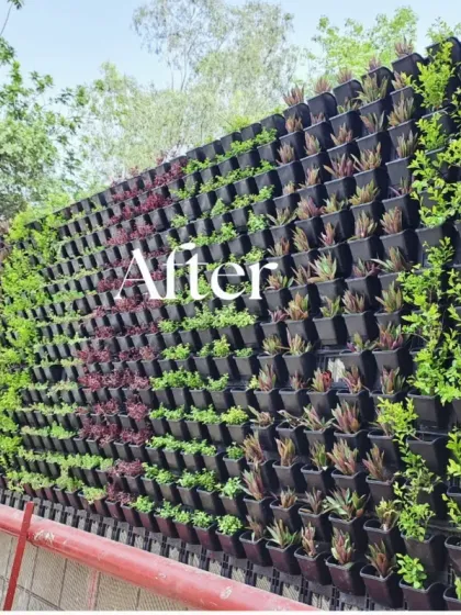- Framework: 1-inch Mild Steel (MS) pipe fabrication creates a gap between the green wall and the building wall to prevent dampness and seepage.