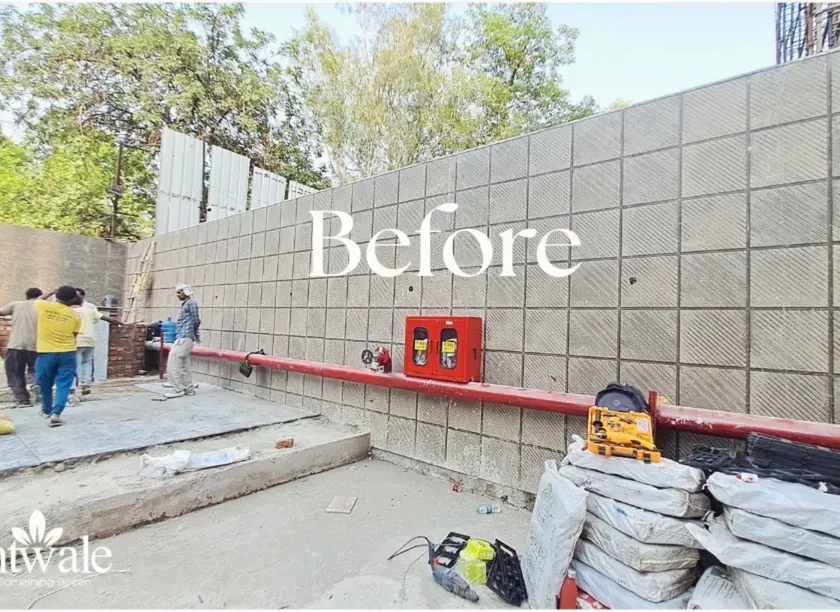 See the dramatic impact of our work. We take ordinary, unused walls and turn them into vibrant green masterpieces, showcasing the complete transformation from the initial site to the final stunning result.
