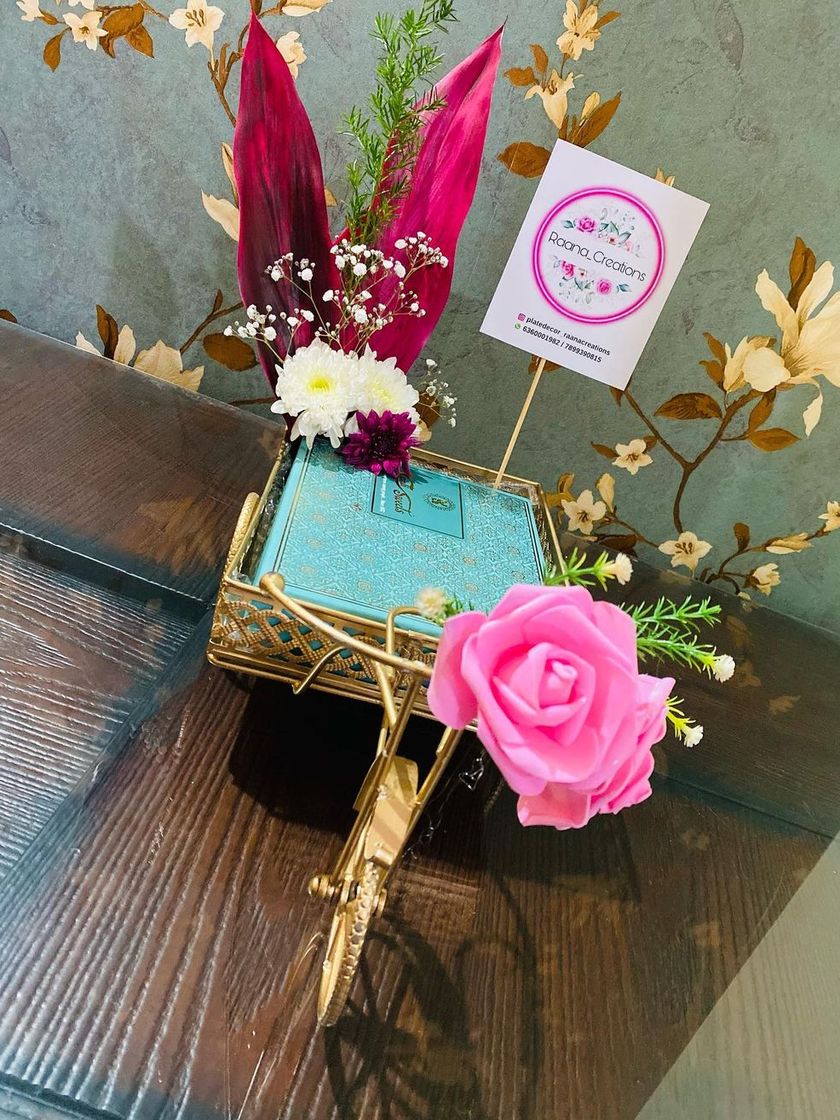 If you have a creative idea, we can bring it to life. We love crafting one-of-a-kind gifts like dolls dressed in chocolates or presenting gifts in unique ways, such as on a miniature cycle rickshaw.