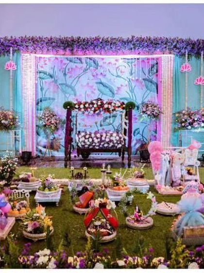 We specialize in creating beautifully decorated platters for weddings, engagements, and half saree functions. Our designs incorporate fresh flowers, fruits, sweets, and traditional elements like dolls and decorated coconuts to honor your cultural ceremonies.
