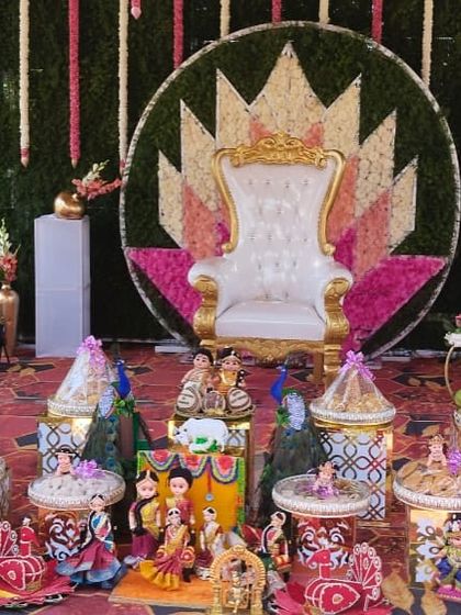 Hi friends, naanu Siri. For me, decorating plates isn’t just a job - it’s being part of your big day, whether it’s Seemantha, wedding, or half saree function. I never repeat designs, so your event gets something only for you. Detailing is my thing, from custom ring platters to tiny dolls. One time at ITC Gardenia, we matched the flower backdrop and plate decor for a client wanting tumba luxury. Seeing their happiness is everything.