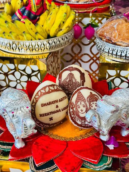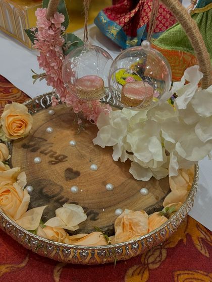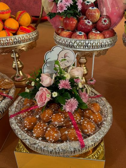 - I decorate all types of ceremonial platters - fruits, sweets, dry fruits, and gifts for every function, from engagements (including custom engagement ring platter decoration) to naming ceremonies and even Haldi or Gowri pooja.