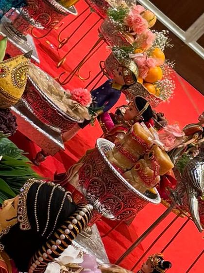 Hi friends, naanu Siri. For me, decorating plates isn’t just a job - it’s being part of your big day, whether it’s Seemantha, wedding, or half saree function. I never repeat designs, so your event gets something only for you. Detailing is my thing, from custom ring platters to tiny dolls. One time at ITC Gardenia, we matched the flower backdrop and plate decor for a client wanting tumba luxury. Seeing their happiness is everything.