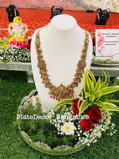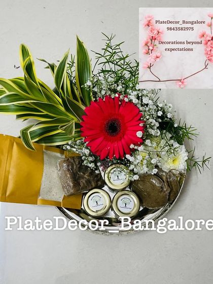 I offer creative ways to present high-value gifts like sarees and jewellery. These platters are designed to highlight the beauty of the gift itself, making it a centerpiece of your ceremony.