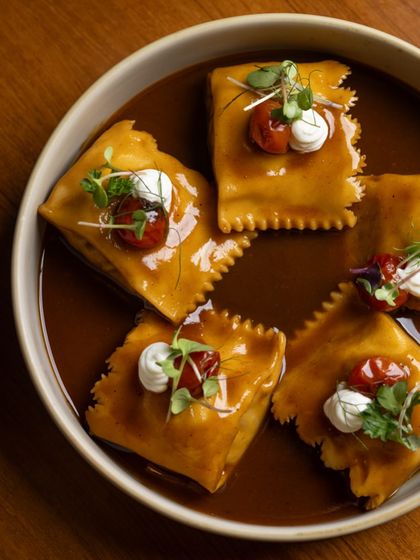 Pasta is at the center of what I do. In this collection, you'll find our signature handmade pastas like crown ravioli and agnolotti, alongside creamy risottos, each telling a story of global flavors and comforting textures. Every bowl is a testament to patience and craft.