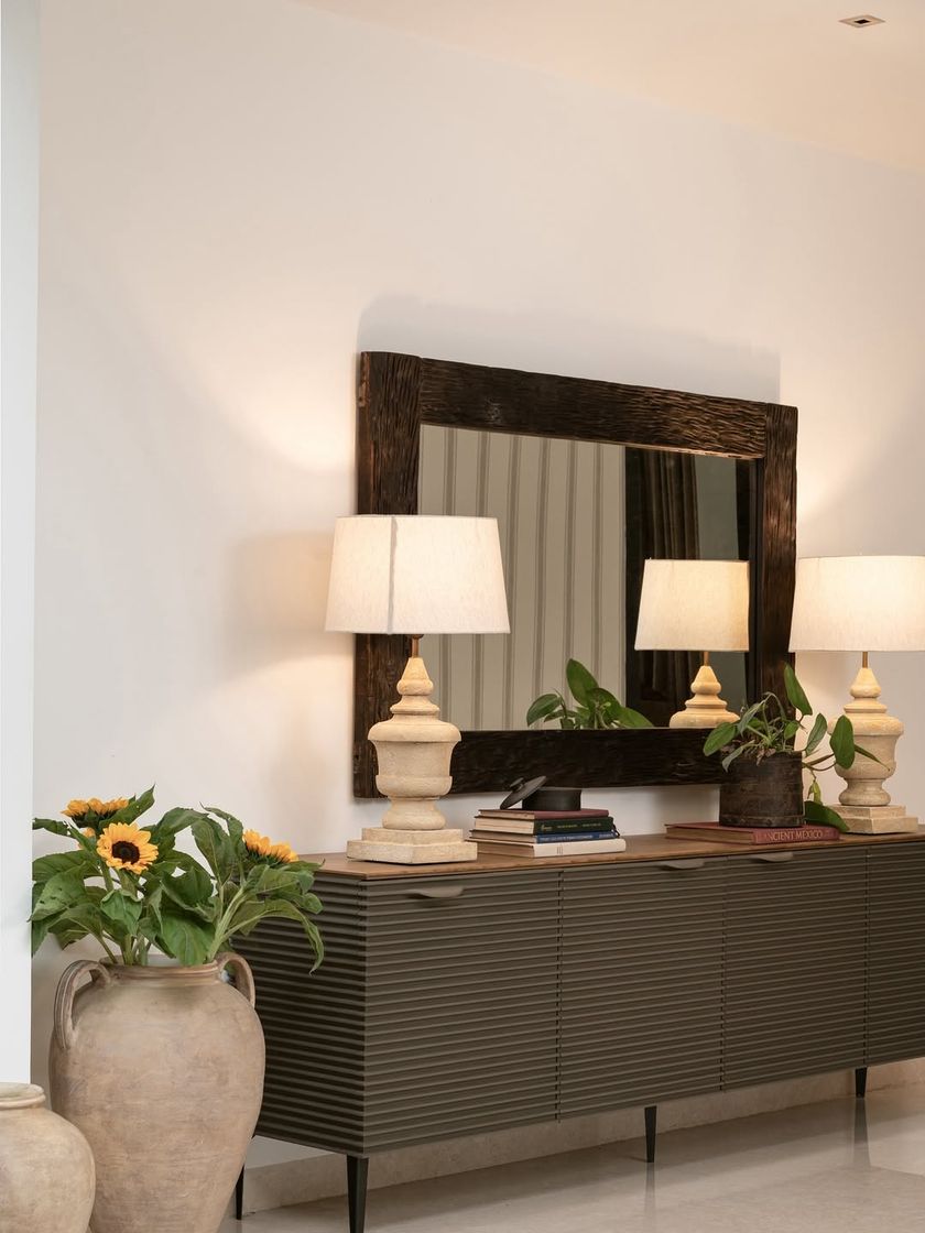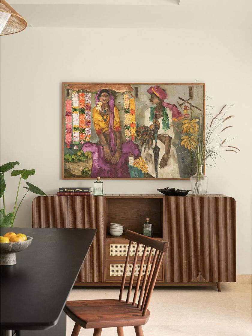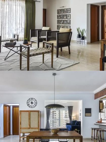 For this 4BHK apartment, we created a seamless blend of modern living and warm, natural comfort. The design uses a palette of earthy neutrals, rich wood tones, and woven textures to craft a home that feels both grounded and effortlessly sophisticated.