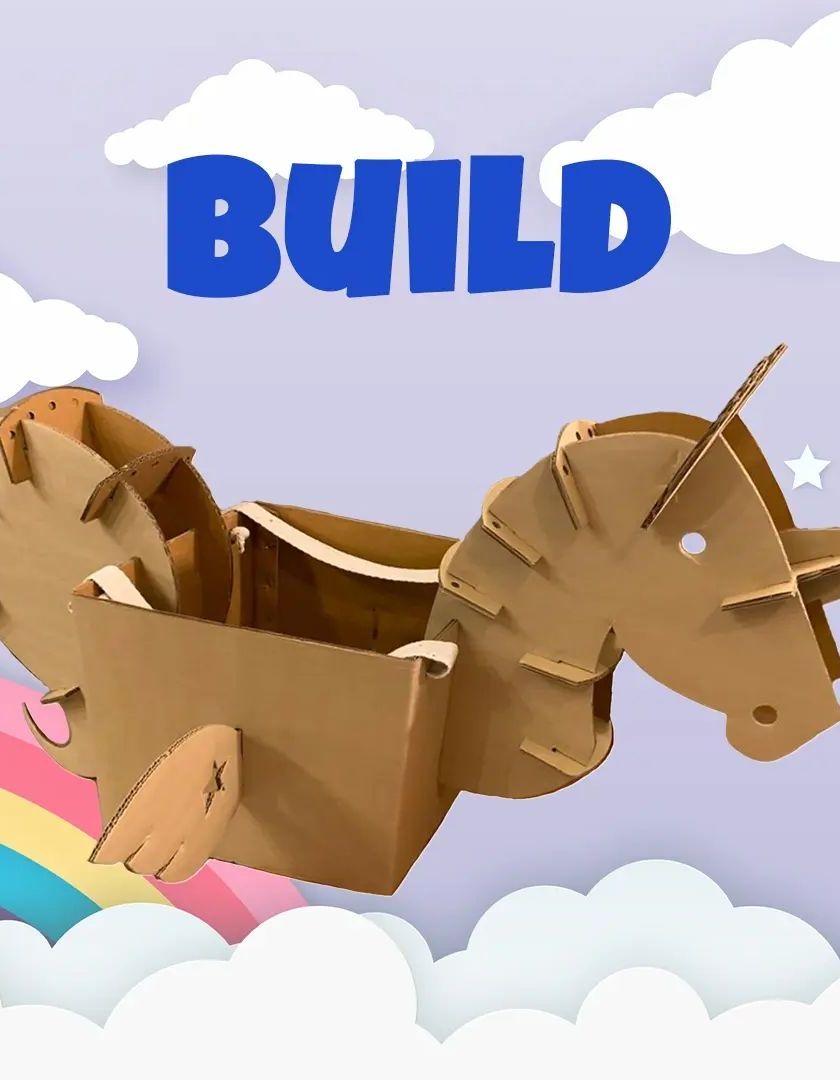 I provide eco-friendly cardboard kits that let your child build their own 3D model from scratch. Each kit, whether it's a unicorn, dragon, or dinosaur, is a blank canvas for them to paint and decorate, turning a simple craft into a toy they can play with.