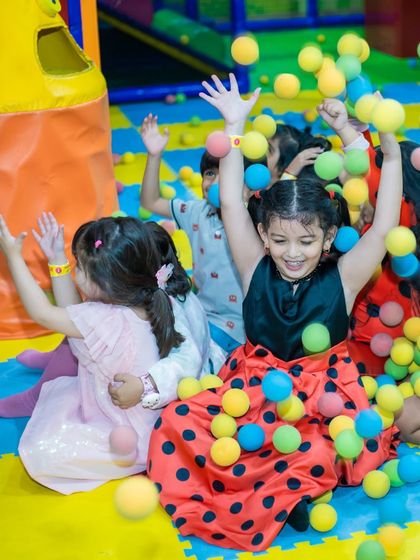 All in One Kids Fun - Massive play area, themed birthday party Delhi, summer camps, festival events for children, arcade games, and a family cafe.