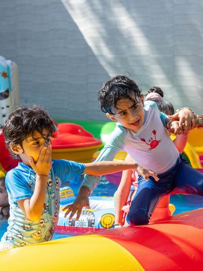 - Outdoor splash pool zone: When the sun’s out, so are the splash pools, inflatable slides, and paddle boats. Our lawn is perfect for running, tumbling, and just soaking up some dhoop (sunshine).