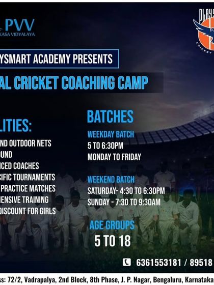 We offer a variety of programs including our Annual Cricket Coaching Camp, with weekday and weekend batches for ages 5 to 18. Find the right fit for your child, learn about our world-class facilities, and become part of the Playsmart family.