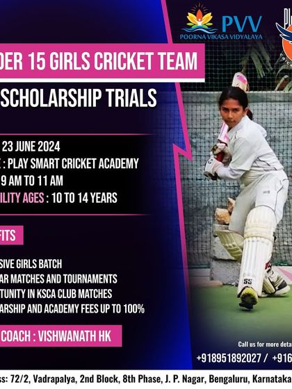 Girls' cricket is a huge focus for us. We run exclusive batches and teams for girls, providing a supportive and empowering environment to learn and excel. We also offer scholarship trials for talented U15 players to help them push further in the sport.