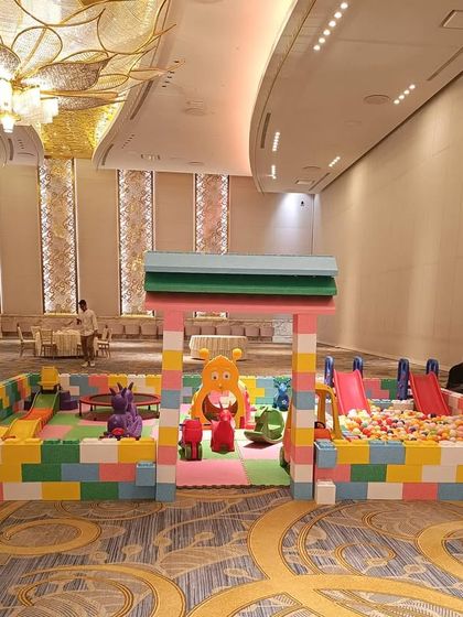 We build immersive and creative play zones using giant, interlocking Lego-style blocks. These setups are fully customizable and can include integrated ball pits, slides, ride-on toys, and climbers, all contained within a colorful and sturdy block fence.