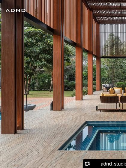 We specialize in creating seamless transitions between interior and exterior spaces through innovative landscape design. Our approach combines large windows, open spaces, and natural ventilation with contemporary aesthetics like modern furniture and wooden paneling.